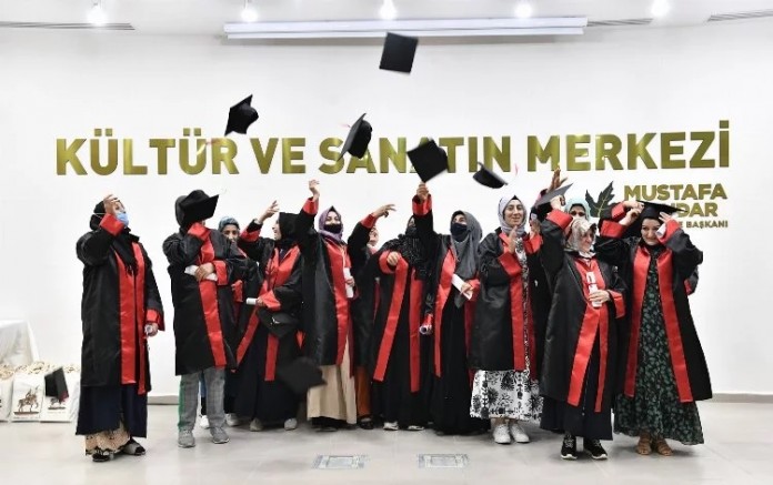 Osmangazi Belediyesi’nin vatandaşların mesleki ve sosyal gelişimine katkı sağlamak amacıyla ücretsiz olarak düzenlediği OSMEK kurslarında okuma yazma öğrenen kadınlar, keplerini attı.
