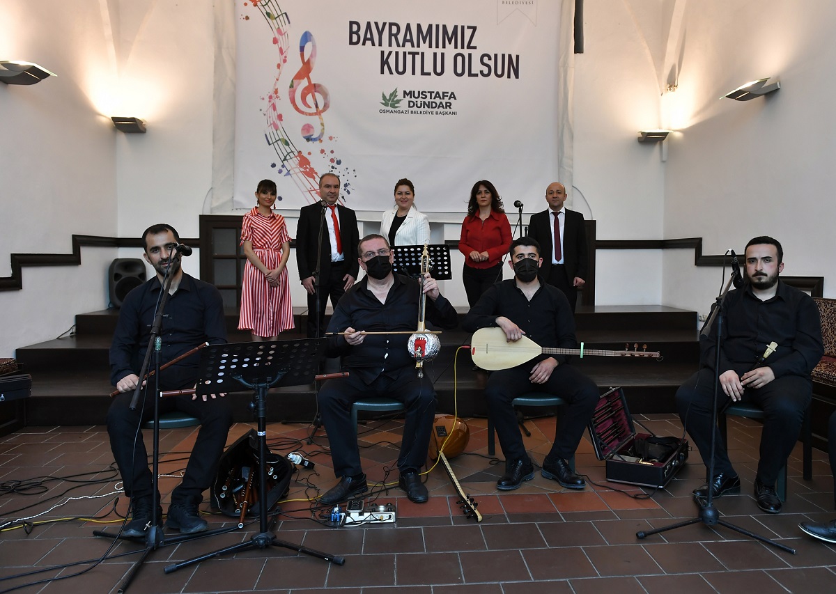 Bursa'nınOsmangazi Belediyesi Türk Sanat Müziği Topluluğu, Kurban Bayramı’nın ilk gününde renkli bir konsere imza attı. Şef Rüştü Şentürk yönetiminde gerçekleşen konserde topluluk üyeleri, ‘Affetmem Asla Seni’, ‘Sevil Neşelen’, ‘Sevemez Kimse Seni’ ve ‘Gözleri Aşka Gülen’ gibi eserlerden oluşan repertuarlarını koro ve solo olarak seslendirdi.