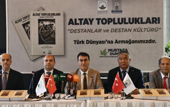 Altay topluluklarının uygarlık yapısı ve kültürel değerlerinin daha iyi anlaşılmasını sağlamak adına geçtiğimiz yıl Eylül ayında düzenlenen 9. Uluslararası Altay Toplulukları Sempozyumu’na ev sahipliği yapan Osmangazi Belediyesi, sempozyumda yayınlanan bildirileri kitap haline getirerek Türk dünyasının kültür hazinesine kazandırdı. Japonya, Hindistan, Moğolistan, Kırgızistan, Kazakistan, Azerbaycan, Macaristan ve İspanya’nın aralarında olduğu ülkelerden 90’dan fazla bilim insanının bildirileri ile 3 cilt olarak oluşturulan ‘Altay Toplulukları -Destanlar ve Destan Kültürü’ kitabı, Uluslararası Türk Kültürü Teşkilatı (TÜRKSOY) Genel Sekreteri Sultan Raev’in de katıldığı toplantı ile Türk dünyasına tanıtıldı.