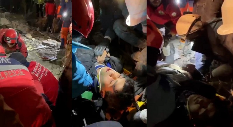 Ekipler, enkazdan çıkardıkları aileyi sağlık ekibine teslim ederken sevinç gözyaşı döktü. Yaralı olarak çıkarılan depremzedeler, ambulansla hastaneye götürüldü.