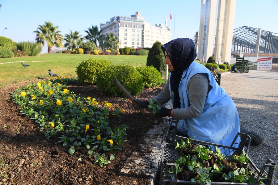 Osmangazi Belediyesi Park ve Bahçeler Müdürlüğü ekipleri, havaların soğumaya başlaması ile birlikte kış aylarında daha dayanıklı olan çeşitli türdeki kış çiçeklerini ilçe genelindeki parklara, meydanlara ve refüjlere ekmeye başladı.