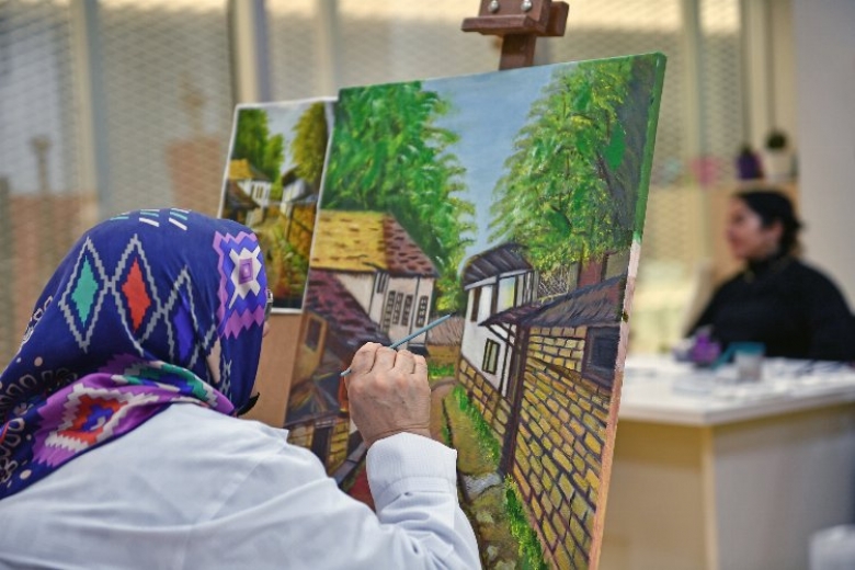 Osmangazi Belediyesi’nin Halk Eğitim Merkezi işbirliğiyle ücretsiz olarak düzenlediği OSMEK kursları, meslek sahibi olmayan vatandaşları çalışma hayatına kazandırıyor. Sosyal belediyeciliğin en güzel örneklerinden olan OSMEK, açtığı resim kursu ile öğrencilere ışık, gölge, oran, orantı, kompozisyon kurma ve renk bilgisi gibi temel teknikleri öğretiyor. Soğanlı ve Demirtaş Kültür Merkezi’nde gerçekleştirilen eğitimlerde bilgilerini tuvalle buluşturan kursiyerlerin ortaya çıkarttıkları eserler ise adeta görsel şölene neden oluyor.