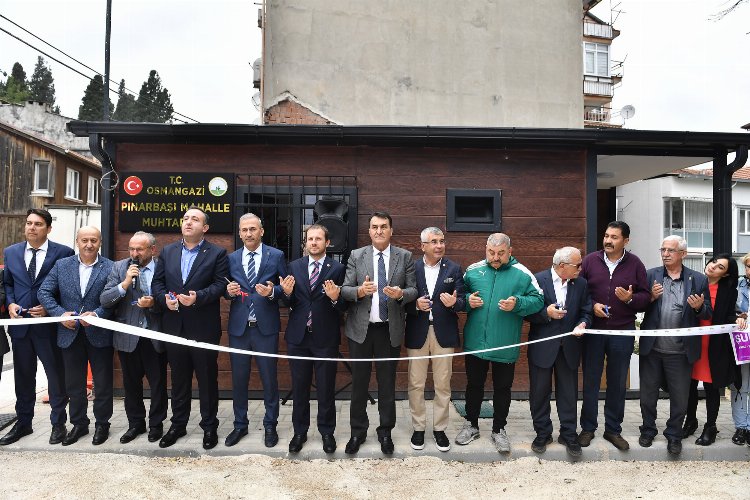 Osmangazi Belediyesi tarafından inşa edilen yeni muhtarlık binası törenle hizmete açıldı. Tek kat olarak inşa edilen muhtarlık binası bünyesinde muhtarlık odası, mutfak ve tuvaletler yer alıyor. Muhtarlık binasının çevresi de yeşil alan olarak düzenlenerek, mahalle için sosyal alan oluşturulacak. Pınarbaşı Mahallesi Muhtarlık Binası’nın açılışına; Osmangazi Belediye Başkanı Mustafa Dündar ile birlikte AK Parti Bursa Milletvekili Ahmet Kılıç, AK Parti Bursa İl Başkan Yardımcısı Kamil Bayramiç, AK Parti Osmangazi İlçe Başkanı Ufuk Cömez, muhtarlar ve vatandaşlar katıldı.