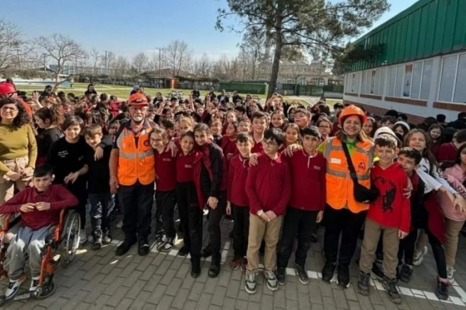 Beşik gibi sallanan Bursa'da sorumluluk sahibi BURSA MAG (Mahalle Afet Gönüllüleri) devreye girdi ve ilk olarak Özlüce ilk öğretim okulunda deprem tatbikatı yaptı.