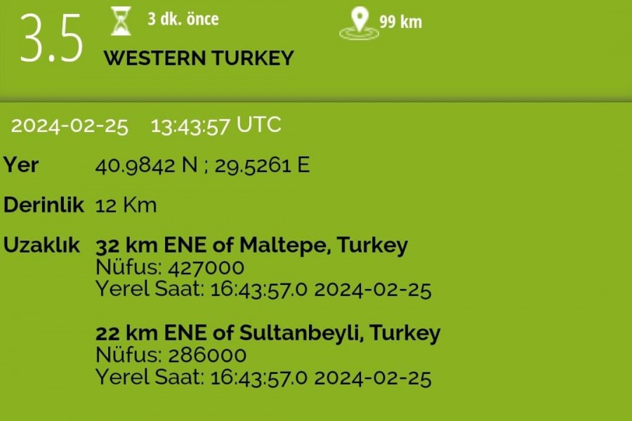 Bursa ve çevresinde saat 16.44 sularında hissedilen bir deprem meydana geldi. Gemlik merkezli depremin 3.4 büyüklüğünde olduğu bildirildi.