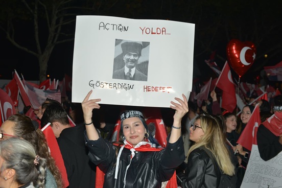 Türkiye’nin birçok yerinde demokrasinin askıda olduğunu, halkın seçtiği başkanların zindanlarda olduğunu söyleyen Başkan Şadi Özdemir, milletin iradesinin tutsak edildiğini dile getirdi. “Bir Ekrem İmamoğlu gider, bin Ekrem İmamoğlu gelir” diyen Başkan Şadi Özdemir “Bu kavga hürriyet kavgasıdır. Bugün geçmişimize olan saygımızı, geleceğimize olan inancımızla birleştirdiğimiz gündür. Bugün, çocuklarımızın gözlerinde Cumhuriyet’in ışığını gördüğümüz gündür. Ve o ışık hiç sönmeyecek. Atam, söz veriyoruz. Senin kurduğun Cumhuriyet’i sonsuza kadar yaşatacağız. Yaşasın Cumhuriyet. Yaşasın Türkiye Cumhuriyeti. Yaşasın Mustafa Kemal Atatürk. Cumhuriyet Bayramımız kutlu olsun” dedi.