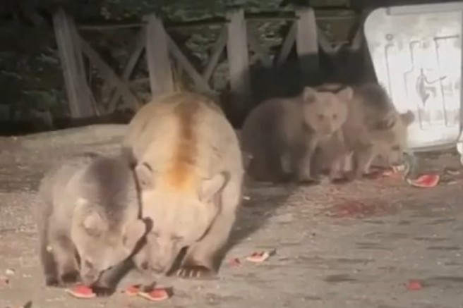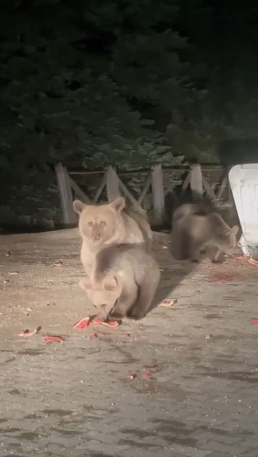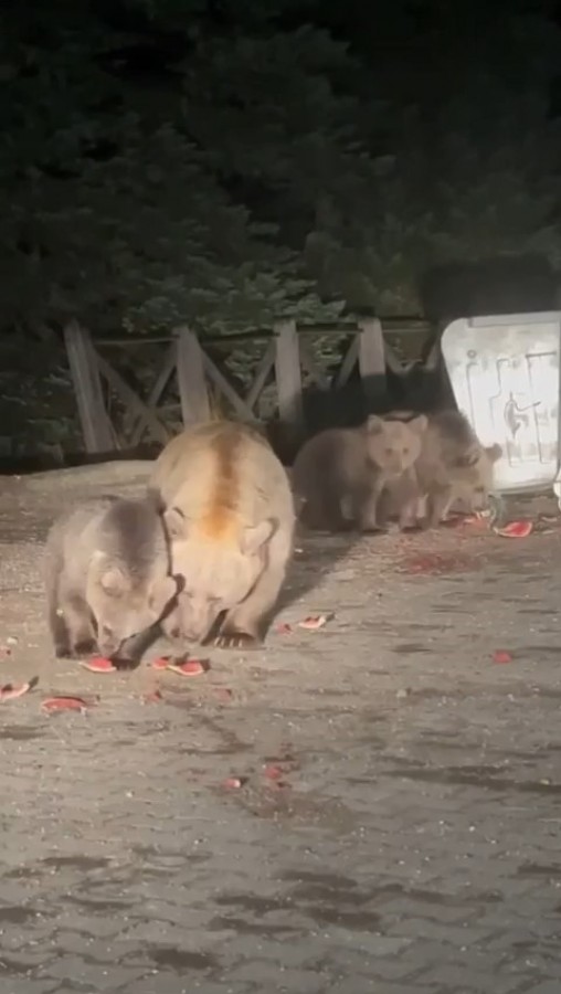 Zaman zaman Uludağ'a çıkan günübirlikçiler ise çöp konteynerlerini yıkan, karıştıran ve karnını doyuran ayı ailelerini izlemeye Sarıalan'a geliyorlardı.