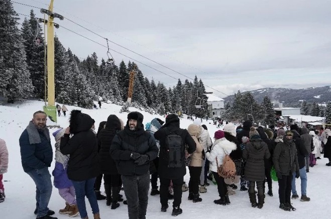 Hava sıcaklığı -7 ile -11 arasında seyrederken tatilcilere hafta sonu gelen günübirlikçiler de eklenince kayak pistleri ve telesiyej kuyruğu uzadı.