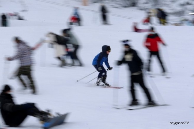 Kar yağışı ile birlikte sezona hızlı bir başlangıç yapan Uludağ'ın zirvesi, hafta sonunu evde geçirmek istemeyen yerli turistlerin akınına uğradı.