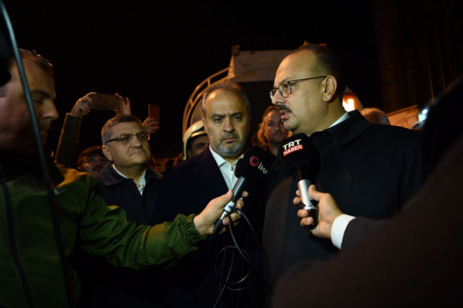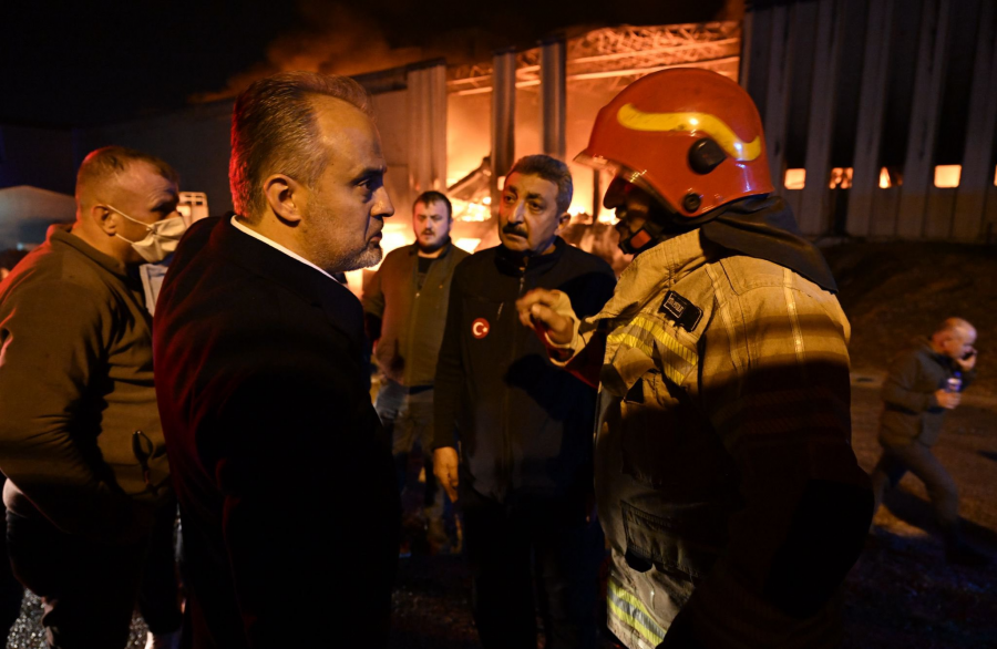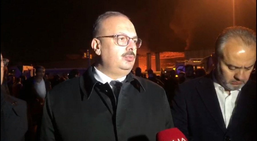 "Saat 19.00 civarı Nilüfer Organize Sanayi Bölgesi'nde bulunan tekstil fabrikamızda yangın çıktı. Önce kontrol altına alındı fakat daha sonra tekrar alevlerin büyümesiyle birlikte maalesef ki bütün fabrikayı kaplayan bir yangına dönüştü. Biz de birkaç saattir burada yangını takip ediyoruz. İlimizdeki Büyükşehir Belediyemizin, ilçe belediyelerimizin, AFAD'ın, Orman Bölge Müdürlüğü'nün, emniyetin bütün imkanlarını buraya seferber ettik. TOMA'lar dahil. Çevre illerden de takviye ekipleri istedik. Müdahale yapılıyor. İnşallah kısa zamanda kontrol altına alacağımızı düşünmekteyiz. Fabrikanın tamamı yandı. Fabrika sahiplerinin ifadesi, içeride herhangi bir kişinin kalmadığı, bütün çalışanların tahliye edildiğine dair bize bilgi verdiler. Burada ilk amacımız çevre fabrikalara yayılmamaları konusunda her türlü gayreti sarf edip, yangını kontrol altına alıp söndürmek."