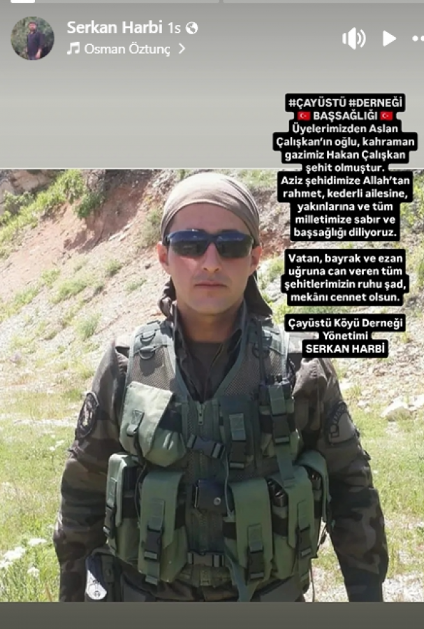 "Üyelerimizden Aslan Çalışkan'ın oğlu, kahraman gazimiz Hakan Çalışkan şehit olmuştur.