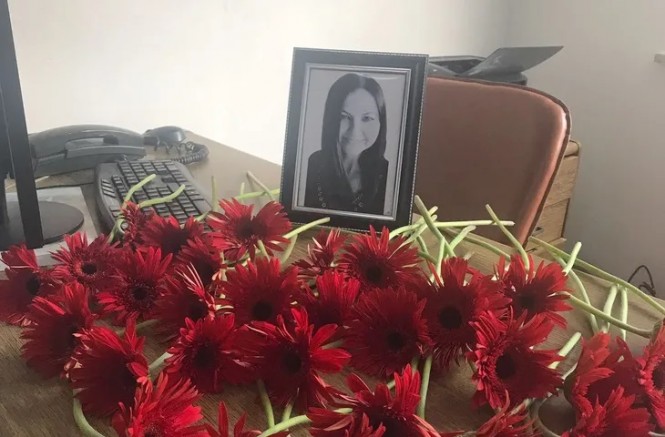 Merhum Fatma Zirek'in belediye masası çalışma arkadaşları tarafından çiçeklerle donatıldı.