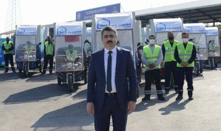 Atıkların geri dönüşümü konusunda birçok yeniliğe imza attıklarını belirten Yıldırım Belediye Başkanı Oktay Yılmaz, “Yıldırım Belediyesi olarak sıfır atık noktasında kalıcı adımlar atıyoruz. Yıldırım’da atık dönüşümde bir ilk olan ‘Yıldırım Atık Dönüşüm Timi’ uygulaması ile ‘çek çek’ diye tabir edilen el arabaları ile atık toplanmasının önüne geçiyoruz. Bu iş ile geçimini sağlayan vatandaşlarımızı da ‘Yıldırım Atık Dönüşüm Timi’ bünyesine alıyoruz. Böylelikle bu hemşehrilerimize araç temin ediyor ve sosyal güvenceli istihdam imkânı sağlamış oluyoruz. Elektrikli atık toplama araçlarımızdaki GPS sistemi ile de araçların takibini yapıyoruz. ‘Yıldırım Atık Dönüşüm Timi’ ile bu işe bir standart getirdiğimiz uygulama sonucunda hem çalışanların hem de vatandaşlarımızın yüzü gülüyor. Yıldırım’da atıklar güvenli bir ortamda dönüşüyor. Belediyemiz kontrolündeki Atık Dönüşüm Timi ile her sokaktayız, Yıldırım’ın hizmetindeyiz” dedi.
