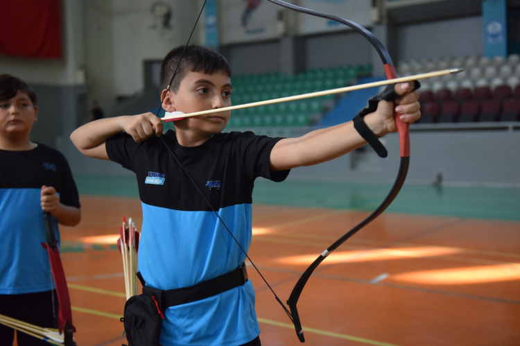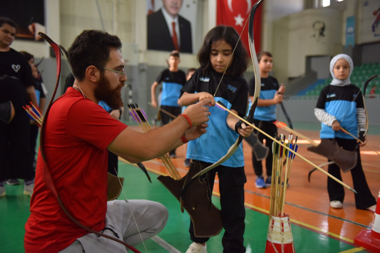 Hedefi tam 12'den vurmak için odaklanma, dikkat ve okçulukla ilgili eğitimler alan çocuklar, Yıldırım Belediyesi'nce verilen kurslardan memnun ayrılıyor.