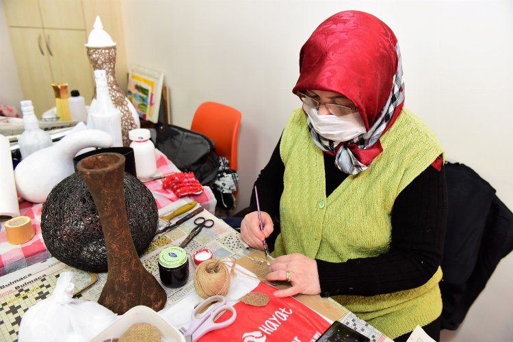 Yıldırım Belediyesi Meslek Edindirme Kursları (YIL-MEK), Yıldırım Kaymakamlığı ve Yıldırım Halk Eğitim Merkezi iş birliğinde düzenlenen ‘Geri Dönüşüm El Sanatları Kursu’ kadınların el becerilerini geliştirirken, ürettikleri ürünleri ekonomik gelire dönüştürme olanağı sunuyor. GüllükMahallesi Hanımlar Lokali’nde haftanın 5 günü verilen kurslarda, kursiyerler evlerinde kullanmadıkları atıkları getirerek birbirinden farklı renkli ürünler ortaya koyuyor. Ev ekonomilerine katkı sağlayan kadınlar aynı zamanda israfın önüne geçerek kaynakların daha verimli kullanılmasını sağlıyor.