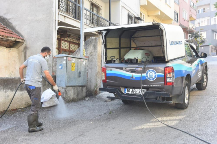 Yıldırım Belediyesi, vatandaşların yoğun olduğu pazaryerleri, dere yatakları ve sulak alanların ilaçlanmasına özen gösterirken ayrıca çöp bırakma noktalarında ilaçlama ve dezenfekte işlemiyle mikrobik ortamların oluşmasının önüne geçiyor.