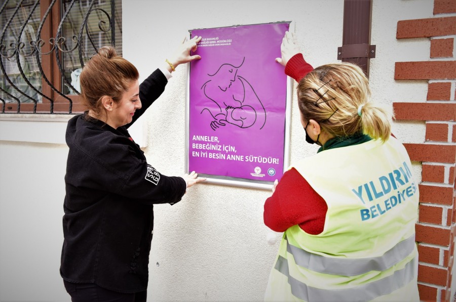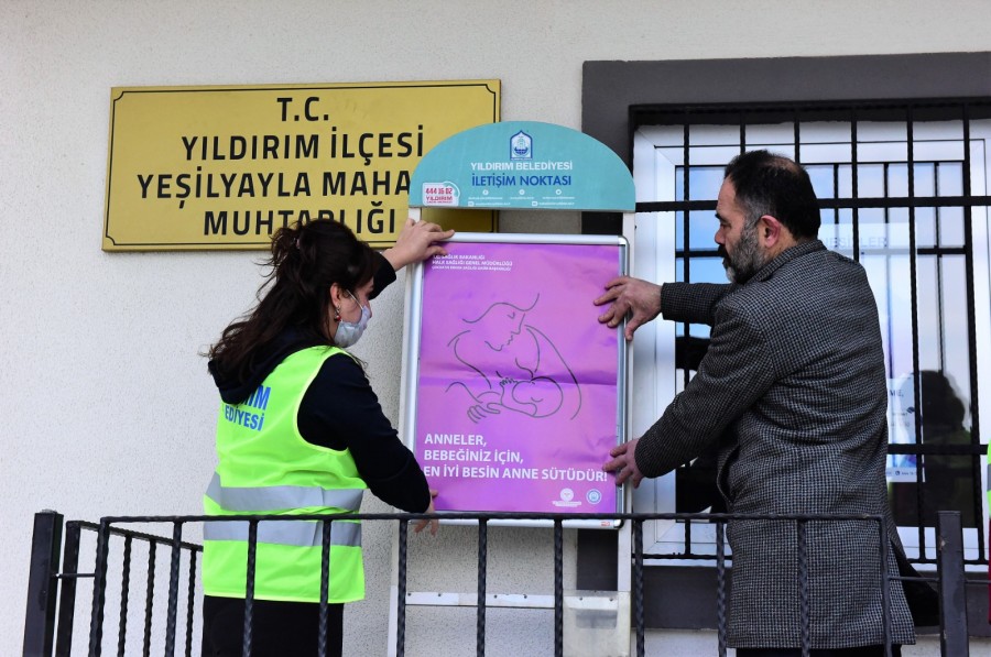 Yıldırım Belediyesi, anne sütünün özendirilmesine ve annelere emzirme konusunda doğru alışkanlıkların kazandırılmasına yönelik bilgilendirme çalışmalarına devam ediyor. Yıldırım Belediyesi Aile Sağlığı Eğitim Merkezi’nde (YASEM) görevli personeller, muhtarlık binalarına afişler asarak, vatandaşlara anne sütünün önemini anlatan broşürler dağıttı. İlk 6 ay sadece anne sütünün verilmesi gerektiğini söyleyen ekipler, “Anne sütü, bebeklerin gereksinimi olan tüm besin öğelerini tek başına sağlayabiliyor. Bu nedenle anne sütü bebekler için yaşamsal öneme sahiptir. İçindeki koruyucu maddeler nedeniyle bebeği enfeksiyonlardan korur” ifadelerini kullandı.