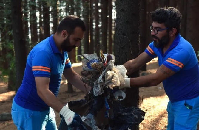 Sabahın erken saatinde başlayan temizlik çalışmaları esnasında çevre kirliliği oluşturan atıklar ile orman yangınlarına neden olabilecek cam kırıkları, şişe ve plastik atıkları titizlikle toplandı.