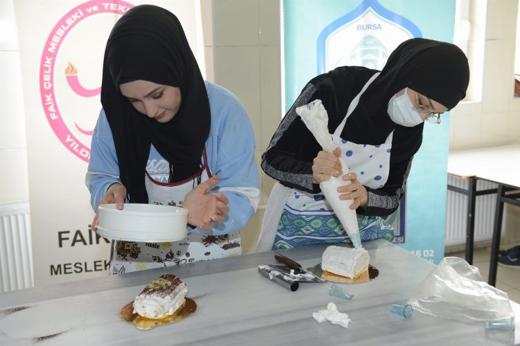 Yıldırım Belediyesi öncülüğünde Yıldırım Halk Eğitim Merkezi, Faik Çelik Mesleki ve Teknik Anadolu Lisesi ve Türk Kızılayı Bursa Kızılay Toplum Merkezi iş birliği ile Faik Çelik Mesleki ve Teknik Anadolu Lisesi’nde ‘İstihdam Odaklı Pastacılık Kursu’ eğitimi veriliyor.