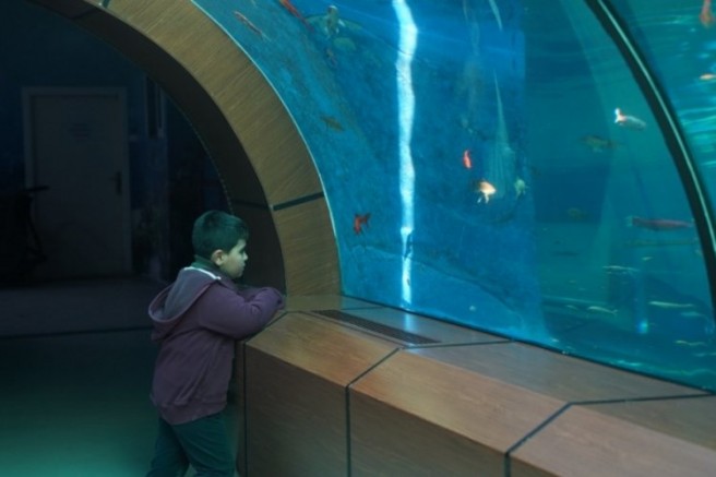 Yaklaşık 25 metre uzunluğunda olan Türkiye'nin en büyük tatlı su tünel akvaryumunun giriş kısmındaki iç akvaryumda timsah balığı, kırmızı kuyruk kedi balığı, vatoz gibi su canlıları da bulunuyor.