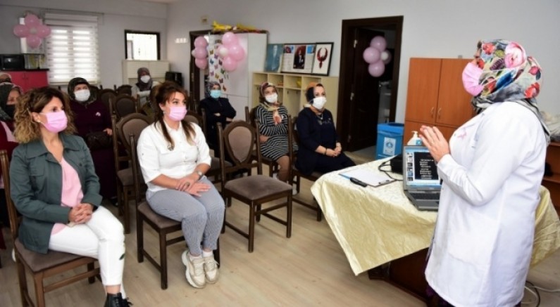 Yıldırım Belediyesi’nin, ilçedeki kadınlara yönelik önleyici sağlık taramaları ve eğitim çalışmaları devam ediyor. Yıldırım Belediyesi Sağlık İşleri Müdürlüğü’ne bağlı Yıldırım Aile Sağlığı Eğitim Merkezi’nde görevli diş hekimi ve hemşireler; ilçenin her noktasında sağlık taraması ve bilgilendirme çalışmaları yaparak kadınları bilinçlendiriyor. Bu kapsamda ‘1-31 Ekim Meme Kanseri Bilinçlendirme Ayı’ programı kapsamında Mehmet Akif Ersoy Mahalle Muhtarlığı eğitim salonunda, hemşireler tarafından meme kanseri hakkında sunum ve bilgilendirme toplantısı yapıldı.