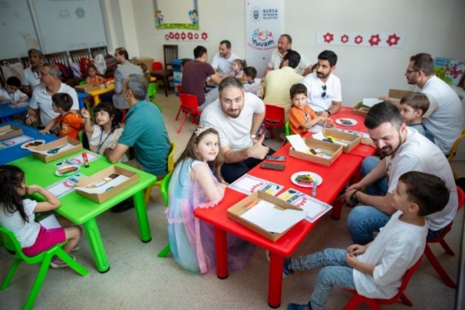 Bursa Büyükşehir Belediyesi'nin 'Önce çocuklar gülümseyecek' teması ile hayata geçirdiği 'Bursa Yuvam Çocuk Eğitim Merkezleri'nde eğitim gören 4-6 yaş aralığındaki çocuklar, Babalar Günü dolasıyla düzenlenen etkinlikte unutamayacakları bir gün geçirdi. Babalarıyla birlikte çerçeve tasarlayarak resim çizen çocuklar, kendi yaptıkları çalışmaları babalarına hediye etti. Çocuklarıyla birlikte keyifli bir gün geçiren babalar da anlamlı etkinlik için Bursa Büyükşehir Belediyesi'ne teşekkür etti.