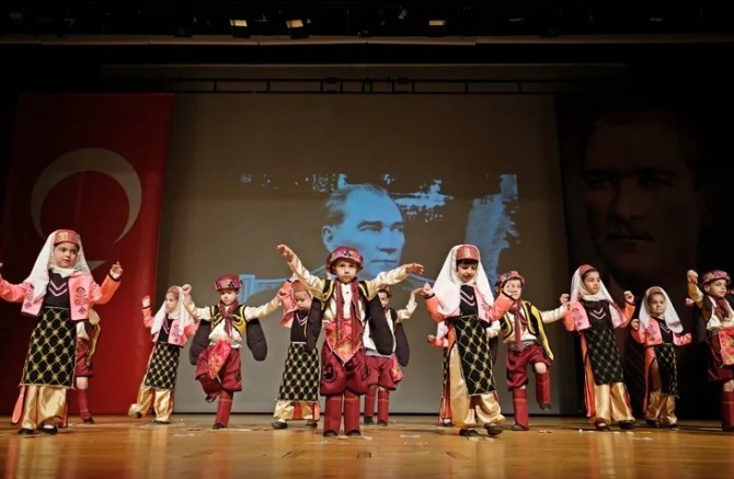 Etkinlikte yer alan çocuklar, performanslarıyla uzun süre alkışlandı.