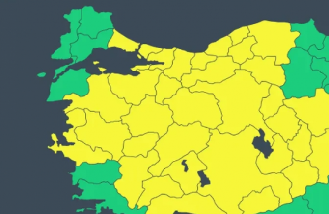 Sarı uyarı verilen iller şöyle: Bursa, Afyonkarahisar, Ankara, Antalya, Balıkesir, Bilecik, Bolu, Burdur, Çankırı, Denizli, Eskişehir, Isparta, İstanbul, İzmir, Kastamonu, Kayseri, Kırşehir, Kocaeli, Konya, Kütahya, Manisa, Nevşehir, Niğde, Sakarya, Uşak, Yozgat, Zonguldak, Aksaray, Karaman, Kırıkkale, Bartın, Yalova, Karabük, Düzce.