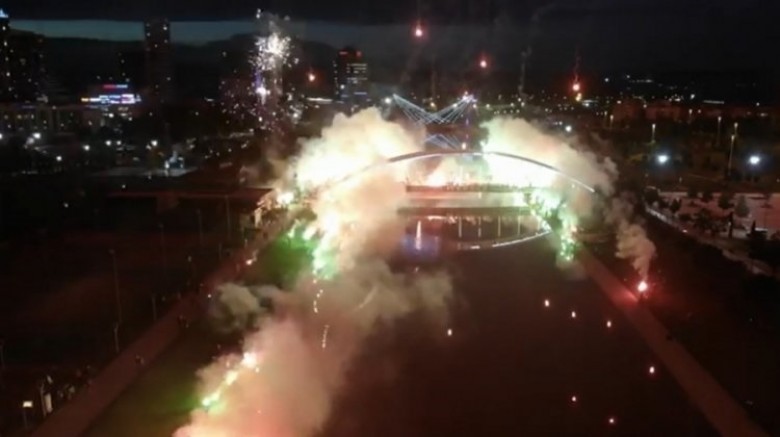 Ayrıca, etkinlikte havai fişekler de gökyüzünü aydınlattı. Bursasporlu taraftarlar, bu sırada tezahüratlarda bulunarak kulübe olan sevgilerini dile getirdi. Gösteriler, drone ile görüntülendi.