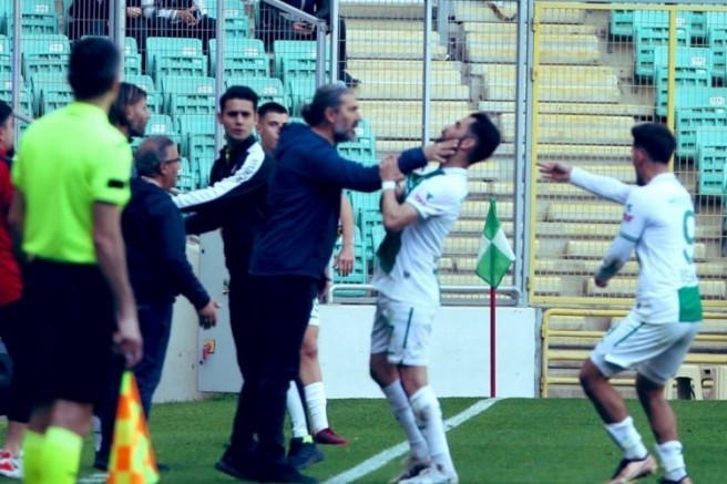 A.Sportif'ten ayrılıp 24Erzincanspor'un başına geçen Teknik Direktör Ahmet Yıldırım, Bursasporlu futbolcu Hasan Ayaroğlu'nun gırtlağına yapıştığı pozisyonu, karşılaşmanın hakemi Yakup Özhan es geçti.