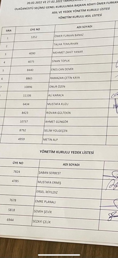 Bursaspor'da Olağanüstü Genel Kurulu öncesi Başkan Adaylığı netleşen BURFAŞ Genel Müdürü Ömer Furkan Banaz'ın yönetim kurulu listesi belli oldu.