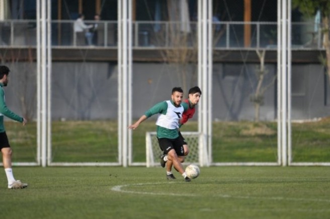Bursaspor Teknik Direktörü İsmail Ertekin gözetiminde yapılan antrenman ısınma hareketleriyle başladı. İkinci bölümde dayanıklılık çalışmaları yapan futbolcular antrenmanı yarı sahada çift kale maç yaparak tamamladı.