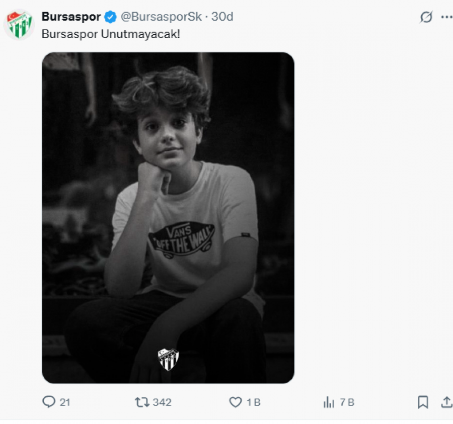 Kadıköy'de, 15 yaşındaki Mattia Ahmet Minguzzi'nin bıçaklanarak öldürülmesine ilişkin davanın karar duruşmasının ardından Bursaspor'un resmi sayfası üzerinden yapılan paylaşımda "Bursaspor Unutmayacak" ifadelerine yer verildi.