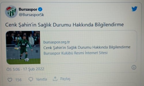 Bursaspor Kulübü'nün açıklaması şöyle;