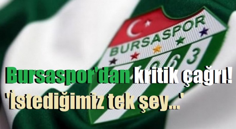Siz değerli Büyük Bursaspor camiasının her bir ferdine sesleniyoruz; 2010 yılından sonra Anadolu'nun en büyük devrimini gerçekleştiren kulübümüzü yalnız bırakmayın. Tüm Türkiye'nin gözü önünde yaşanan olaylardan sonra gerekli tepki kulübümüz ve camiamız tarafından verilmiştir. Ancak bu haklı tepkimizde şehrin dinamiklerini de yanımızda görmek istiyoruz. İstediğimiz tek şey Bursa'nın en büyük değeri olan Bursaspor'un hakkının yenmemesi. Bizler BURSASPOR'UN hakkını her kulvarda korumak için savaşırken sizleri bu süreçte yanımızda görmek istiyoruz. Unutulmamalıdır ki Bursaspor Bursa'da yaşayan 4 milyon hemşehrimizin ortak değeridir.