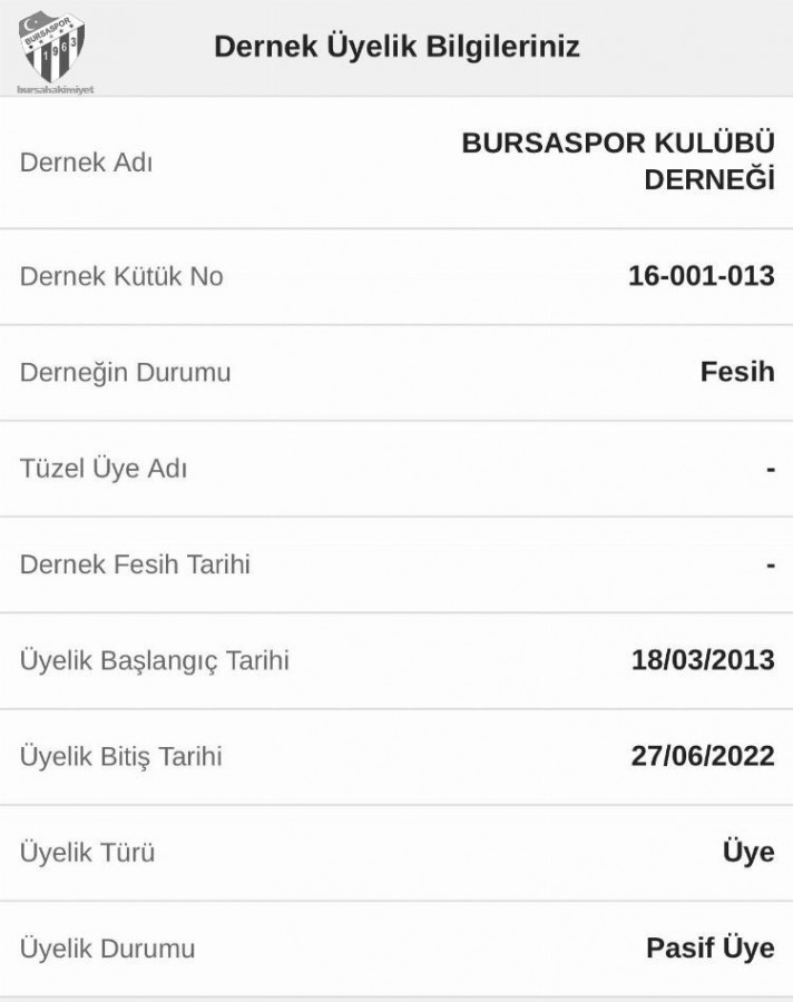 E-Devlet ve DERBİS Sisteminde kulübümüzün kapalı gözükmesinin sebebi devir işlemlerinin devam etmesinden dolayıdır.