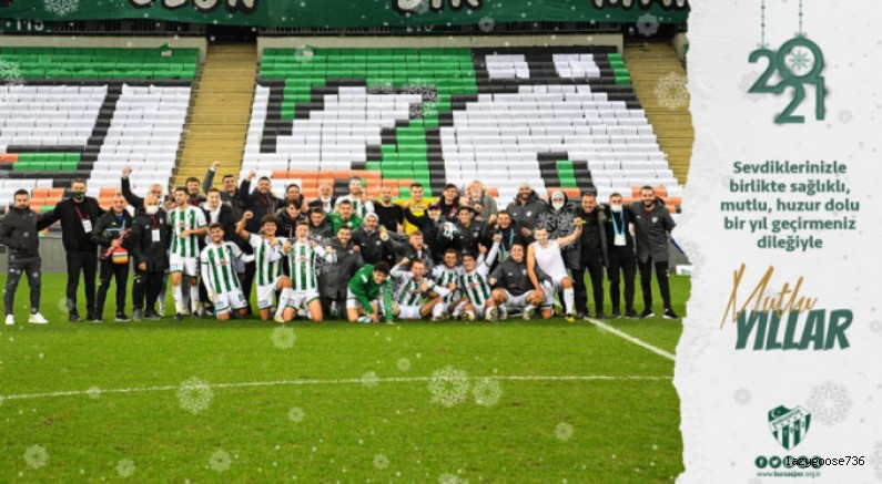 TFF 1.Lig ekibi Bursaspor, resmi sosyal medya hesaplarından yeni yıl mesajı yayımladı. Yeşil beyazlı kulüp şu dileklerde bulundu: "Sevdiklerinizle birlikte sağlıklı, mutlu, huzur dolu bir yıl geçirmeniz dileğiyle. Mutlu Yıllar Büyük Bursaspor Ailesi."