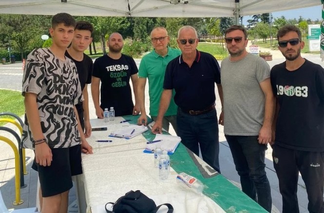 Yardımcısı Levent Batur ile birlikte Teksas’ın başlatmış olduğu imza kampanyasına destek vermek için Atatürk Stadı’ndaki bölgeye giden Sakder, üyeleri de imza atmaya davet etti.