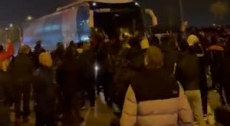 Takım otobüsü tesislere gireceği esnada takım otobüsünün önünü keserek ''yönetim istifa'' ve ''bizleri aleme rezil ettiniz'' sloganları attı. Polis ekipleri yolu kesen taraftarla müdahale ederek otobüsün tesislere girmesini sağladı.