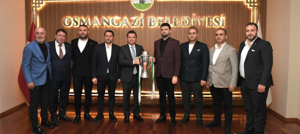 TFF 3. Lig 1. Grup’ta şampiyonluğunu ilan eden Bursaspor’un şampiyonluk kupasının bu defa ki durağı Osmangazi Belediyesi oldu. Osmangazi Belediye Başkanı Erkan Aydın, Bursaspor Başkanı Enes Çelik ve yönetim kurulu üyelerini başkanlık makamında şampiyonluk kupasıyla ağırladı. Başkanlar şampiyonluk kupasını beraber kaldırarak hatıra fotoğrafı çektirdi.