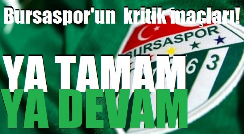 Bursaspor’un 29. haftada 14 Mart Pazartesi günü evinde oynayacağı maç öncesi bir de erteleme maçı oynanacak. Yeşil Beyazlılar, 10 Mart Perşembe günü 1-0 geride olduğu ve kar sebebiyle ileri bir tarihe ertelenen 22. haftadaki Eyüpspor maçına çıkacak. Timsah bu zorlu 3 deplasman maçından mutlak puanlar çıkarmak zorunda. Bursaspor, eğer bu maçlardan istediği puanları alamazsa küme düşme hattından çıkmaya iyice zorlanacak.