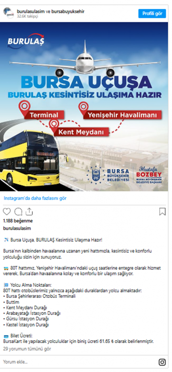 BURULAŞ'ın 80T hattı hakkındaki paylaşımı şöyle;