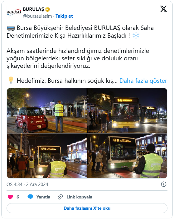Hedefimiz: Bursa halkının soğuk kış günlerinde daha konforlu ve sorunsuz bir yolculuk yapmasını sağlamak! BURULAŞ, sizin için sahada!