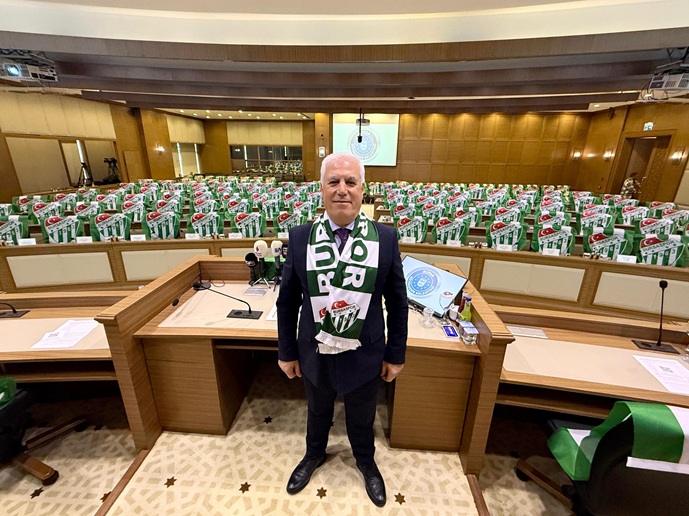 Konuşmasına şampiyon olan Bursaspor’u kutlayarak başlayan Başkan Mustafa Bozbey, Yönetim Kurulu Başkanı Enes Çelik’i, yönetimi, sporcuları, antrenörleri ve taraftarları emeklerinden dolayı tebrik etti. Bursa’da birlik ve beraberliğin ne demek olduğunu herkese gösterdiklerini belirten Başkan Bozbey, “Siyasetçileriyle, kent yöneticileriyle, belediye başkanlarıyla, kent idarecileriyle, sivil toplum kuruluşlarıyla bir araya geldiğimizde Bursaspor’un ve Bursa’nın ne kadar güçlü bir kent olduğu ortaya çıkmıştır. Bu başarı Bursalıların başarısıdır. Bu başarı hepimizin başarısıdır. Bu başarı ve şampiyonluk Bursa’ya gönül vermiş herkesin başarısıdır. Bu başarıların devamını diliyoruz. Büyükşehir Belediye Meclisi olarak Bursaspor’un maddi ve manevi yanındayız. İnşallah kısa süre içerisinde Süper Lig’e çıkması, Avrupa’da da kentimizi temsil edebilecek konuma gelmesi en büyük arzumuzdur. Bu da gerçekleşecektir” diye konuştu.