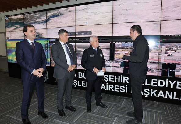 Bursa Büyükşehir Belediye Başkanı Mustafa Bozbey, Afet Koordinasyon Merkezi’ni (AKOM) ziyaret ederek yağış beklentisi ve yapılan hazırlık çalışmaları hakkında bilgi aldı. Büyükşehir ekiplerinin yoğun kar yağışı dahil olmak üzere en nitelikli hizmeti verecek şekilde hazır bulunduğunu belirten Başkan Bozbey, “Ekiplerimiz ve ilçe belediyelerin ekipleri uyum içinde çalışarak çıkabilecek olumsuzlukları en aza indirmek amacıyla sahada olacak. Ayrıca yolda kalan vatandaşlarımız bir telefon aracılığıyla bize ulaşabilir. Onlara hem sıcak yemek desteği, hem de yolda kalma ve benzeri durumlarda teknik müdahale desteği vereceğiz. Arkadaşlarımız her türlü hazırlığı yapmış durumda. Bursalılar hiç endişe etmesin” diye konuştu.