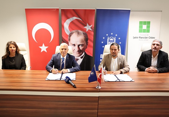 Planlı kentleşme ve sürdürülebilir şehircilik ilkeleri doğrultusunda çalışmalarını yürüten Büyükşehir Belediyesi, önemli bir organizasyona daha destek oluyor. Bursa Büyükşehir Belediyesi ve TMMOB Şehir Plancıları Odası, 6-8 Kasım 2025 tarihleri arasında düzenlenecek olan ‘8 Kasım Dünya Şehircilik Günü 49. Kolokyumu’ için işbirliği protokolü imzaladı. ‘Değişimin Eşiğinde’ temasıyla gerçekleştirilecek etkinlikte, şehircilik dünyasının güncel sorunları ve çözüm önerileri masaya yatırılacak. Atatürk Kültür Merkezi Merinos Yerleşkesi’nde üç gün sürecek olan kolokyumda, paneller, akademik bildiriler, öğrenci çalıştayları ve sergiler düzenlenecek.