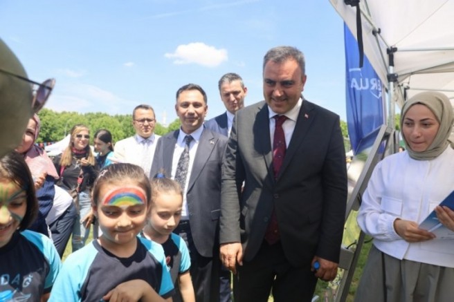 Bursa Büyükşehir Belediyesi'nin 26-29 Mayıs tarihleri arasında gerçekleştirdiği 'Çevre Haftası Şenliği', kentin dört bir yanındaki etkinliklerle devam ediyor. 'Doğa için buluşuyoruz' temasıyla hazırlanan programlar kapsamında Merinos Parkı'nda düzenlenen şenliğe katılan Büyükşehir Belediyesi Başkanvekili Mehmet Aydın Saldız, Büyükşehir Belediyesi Genel Sekreter Yardımcısı Mehmet Emin Direkçi ve Çevre Koruma ve Kontrol Dairesi Başkanı Ali Alper Makam, alanı gezerek çocuklarla ve velileriyle sohbet etti. Atölyelerden sergilere, oyun parkurlarından çiçek dikimine kadar birçok etkinliğe katılan çocuklar, çevrenin önemini eğlenerek öğrendi. Çocuklarda çevre bilincinin geliştirilmesi amacıyla hazırlanan şenlikte katılımcılara dağıtılan fidanlar, daha sonra toprakla buluşturuldu.