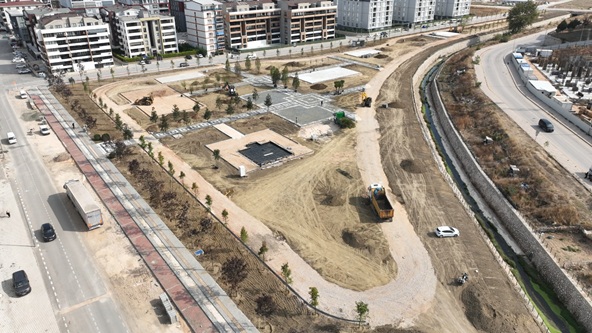 Çalışmaları ara vermeden sürdüren Büyükşehir Belediyesi ekipleri, park alanının sert zemin uygulamalarını önemli ölçüde tamamladı. Ağaçlandırma faaliyetlerinin de başladığı parkta, toplam 350 adet büyük ağaç yer alacak. İşlemlerin devam ettiği çalı ve ağaççık dikiminin de bitirilmesinin ardından sulama, aydınlatma ve drenaj çalışmalarıyla parkın yapımına devam edilecek.