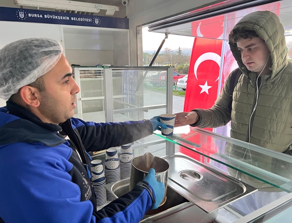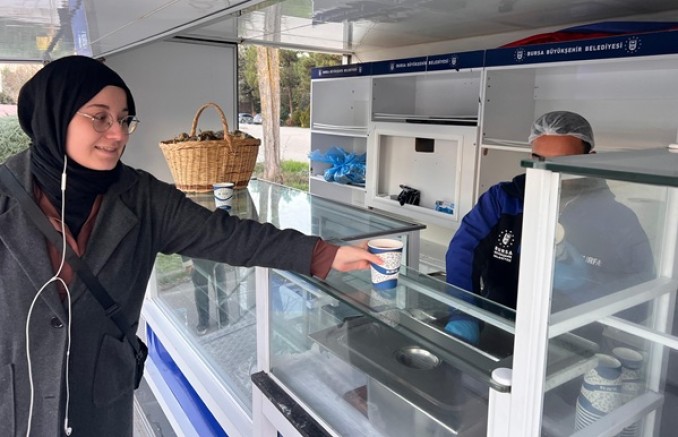 Her gün yaklaşık 1500 öğrenciye, özel olarak hazırlanan mobil araçla BURFAŞ görevlileri tarafından sıcak çorba ikram ediliyor.