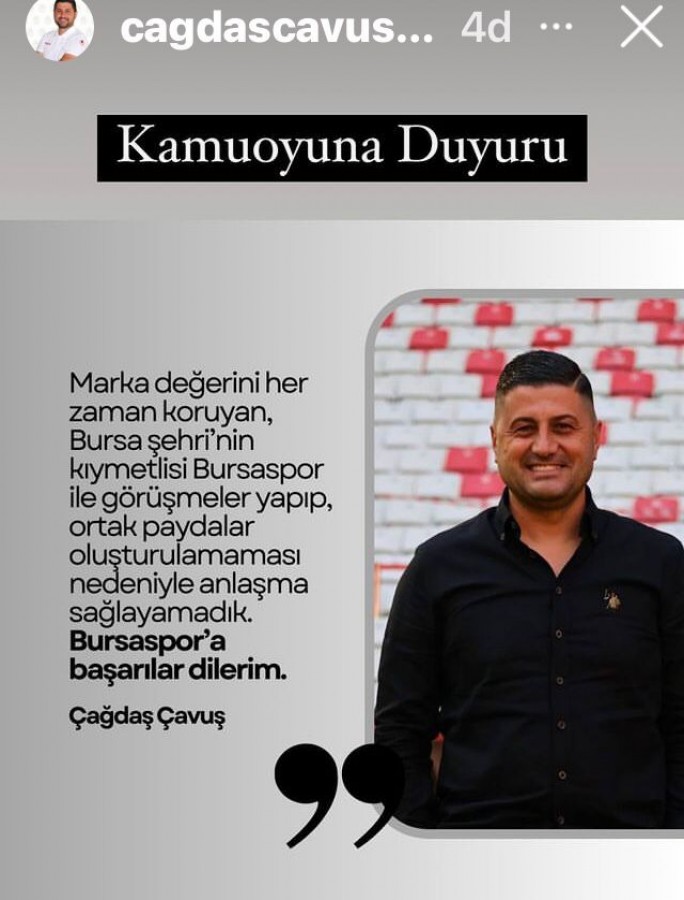 Bursaspor'un bir süredir görüştüğü belirtilen teknik direktör adayı Çağdaş Çavuş'la anlaşamadığı ortaya çıktı.